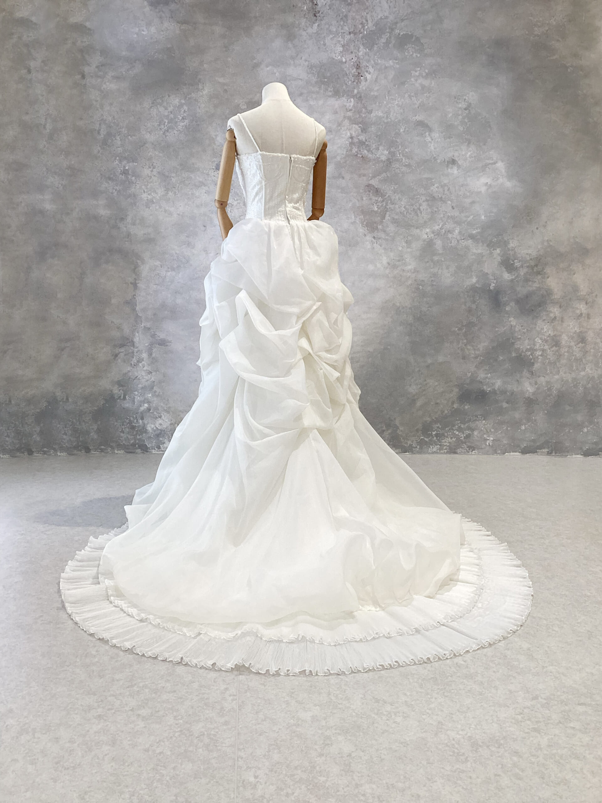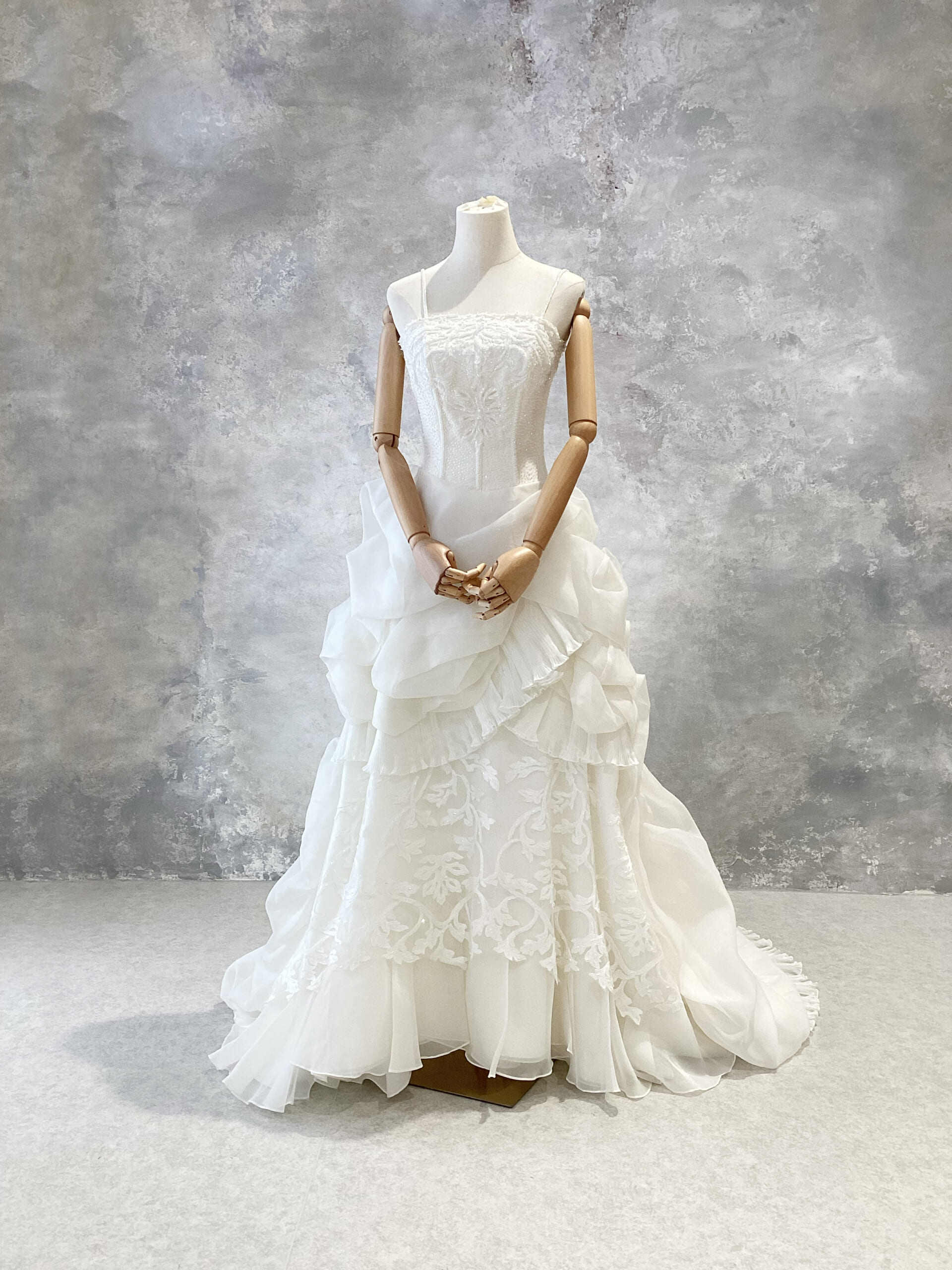 アクセサリーやベールとのコーディネートも容易で、着用する方の個性を引き出すスタイリングが可能です。人生で一度の大切な日にふさわしい、理想のプリンセススタイルを叶えるこのドレスで、特別な瞬間を過ごしてみてはいかがでしょうか。